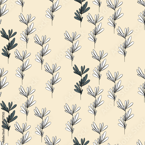 Vector seamless half-drop pattern, with leaves