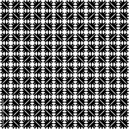 Vector seamless pattern. Abstract monochrome geometric texture. Simple black & white ornamental background with rounded figures. Diagonal grid. Repeat tiles. Design for decor, textile, prints, fabric