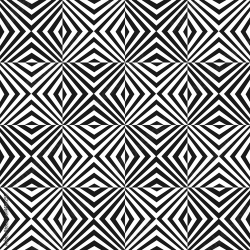 Vector seamless pattern with black and white stripes. Simple modern texture with crossing diagonal striped lines. Optical illusion effect. Monochrome geometric background, repeat tiles. Pop art style
