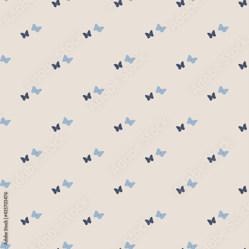 vector seamless pattern with the image of butterflies in blue and beige