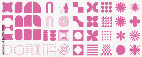 Vector set of brutalist geometric shapes. Trendy abstract minimalist figures, stars, flowers, circles. Modern abstract graphic design elements. Vector