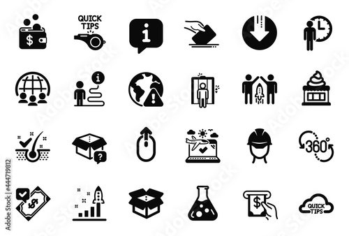 Vector Set of Business icons related to Waiting, Ice cream and Partnership icons. Development plan, 360 degree and Accepted payment signs. Anti-dandruff flakes, Open box and Quick tips. Vector