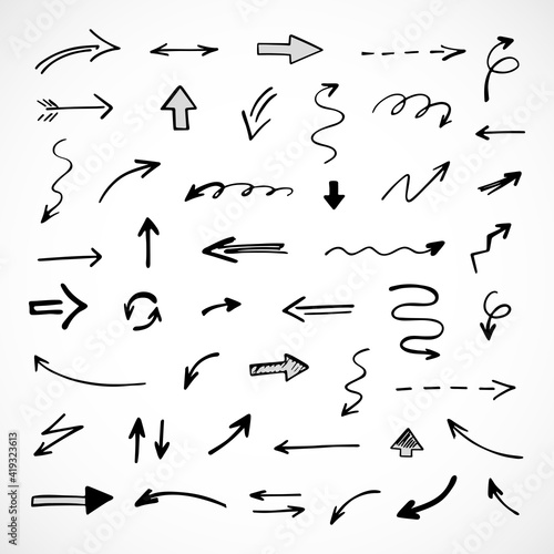 Vector set of hand-drawn arrows, elements for presentation