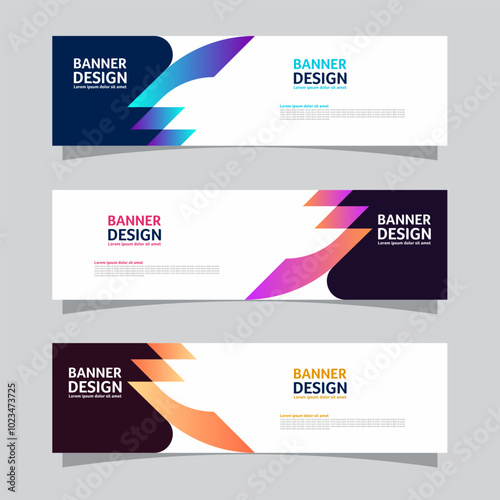 Vector set of landscape banner background design concept. Colorful background business layout template