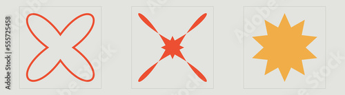 Vector set of Y2K. Retro futuristic graphic ornaments. Modern abstract forms. Stars, starburst . Vector illustration