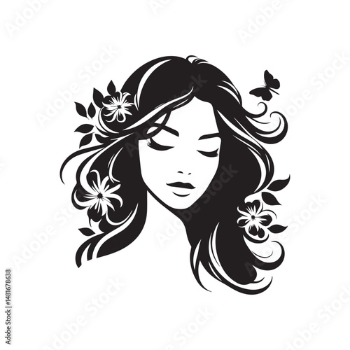 vector silhouette of a beautiful woman like an angel, simple black and white that can be edited