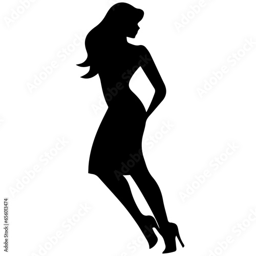 Vector silhouette of a slim young woman standing, black color, isolated on white background