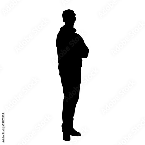 Vector silhouette of man standing, business people, black color, isolated on white background