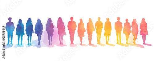 Vector silhouettes of Crowd silhouette,People group colorful shadow men and a women business people silhouettes,person team mystery,Vector illustration black shapes isolated on white background.