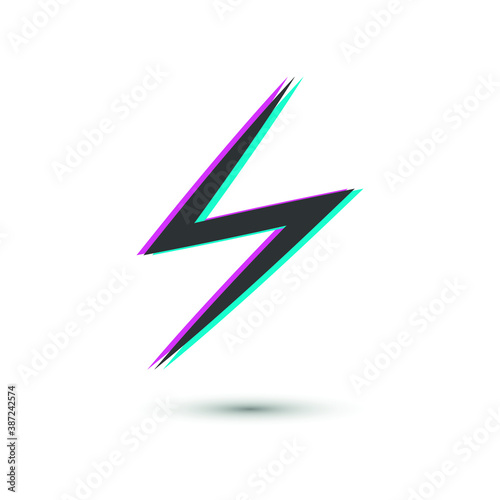 Vector thunderbolt icon with glitch effect. For design, advertising banner.