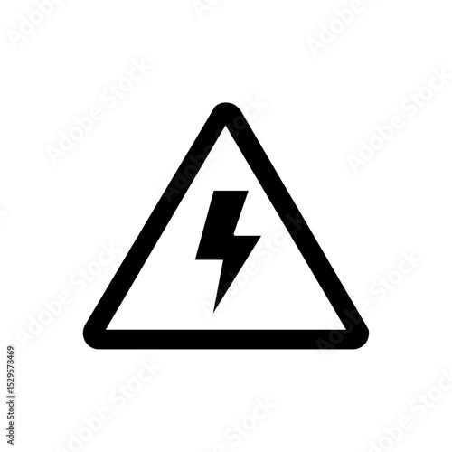 Vector warning icon of a lightning bolt in triangle, symbolizing electric hazard. Simple high voltage alert icon used in industrial and power contexts.