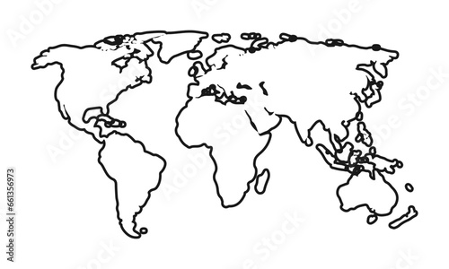 Vector white background of world map with line art design