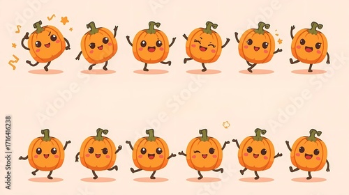 Vector-Style Kawaii Pumpkins Dancing Isolated for Commercial Stock Use