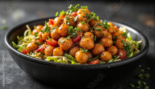 Vegan Buddha Bowl with Spicy Chickpeas in Black Minimalist Setting