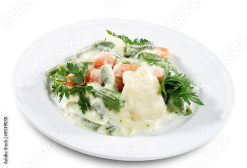 Vegetables Garnish with Béchamel Sauce Isolated on White