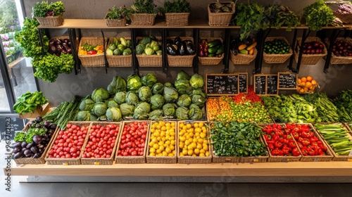 vegetables on store shelves. Selective focus