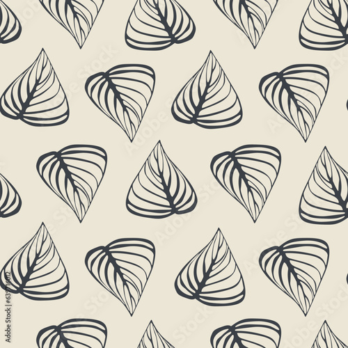 Veined leaves create a seamless pattern for modern tropical textiles. White and black. Vector.