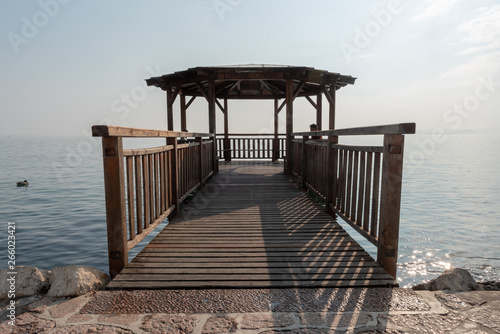Veranda in legno su pontile in acqua al lago