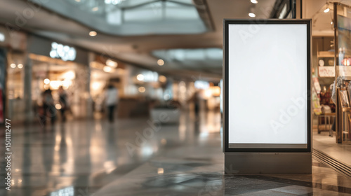 Vertical blank white billboard or poster stand inside a luxury shopping mall