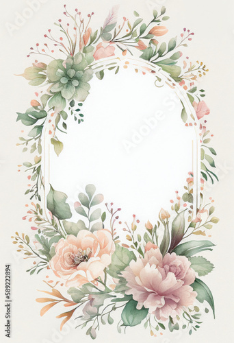 Vertical Floral Frame, Watercolor Flowers, Illustration, Generative AI