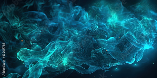 Very Detailed of Cyan Color Neon Liquid Smoke Abstract Background AI Generative