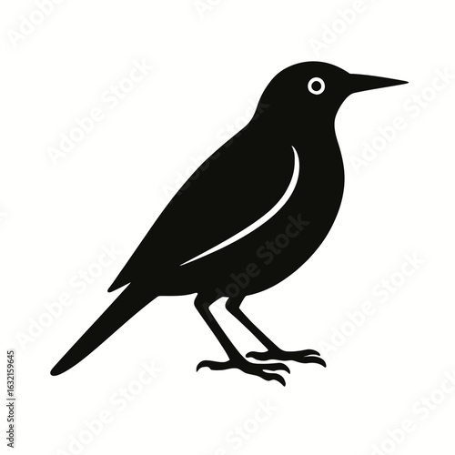 very simple flat and single minimalist Eastern Meadowlark Silhouettes in black on a white background