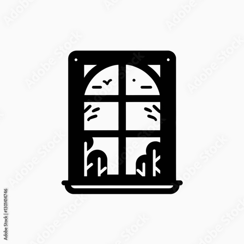 very simple flat and single minimalist Window Silhouette in black on a white background