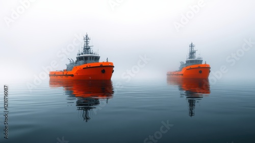 Vessels in Misty Waters During Construction Work