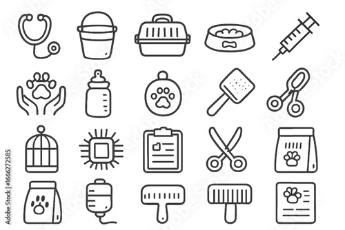 Veterinary and Pet Care Icon Set stethoscope bucket