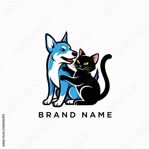 Veterinary clinic logo featuring friendly dog and cat is perfect for brand identity. Veterinary clinic logo design represents health and love for domestic animals.