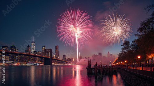 Vibrant 2025 New Year Celebrations with Fireworks and Festive Crowds in Stunning Cityscape