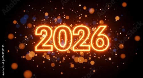 Vibrant 2026 new year design with glowing orange numbers and bokeh lights, creating a warm and energetic atmosphere for celebrating the upcoming year