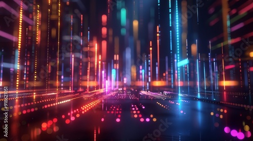 Vibrant 3D Data Chart Futuristic Tech Illuminated in Brilliant Colors on Dark Background