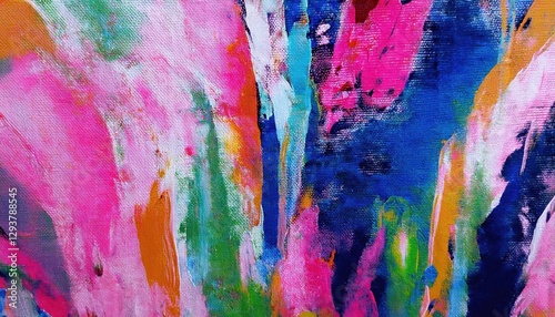 vibrant abstract acrylic painting with bold pink, blue, and orange brushstrokes on textured canvas for modern wall art