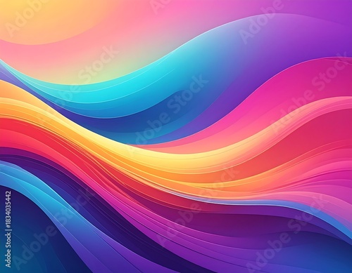 Vibrant abstract artwork featuring flowing, colorful, layered waves