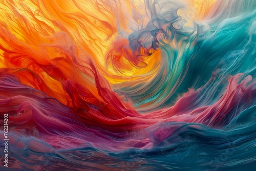 Vibrant Abstract Artwork with Fluid Colorful Waves Blending, Artistic Background or Wallpaper Design