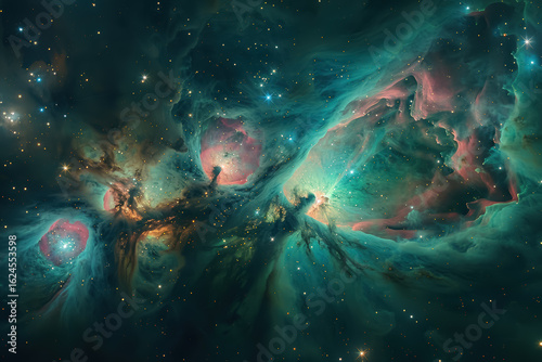 Vibrant abstract cosmic nebula illuminating vast deep space with ethereal glowing stars perfect for science astronomy and creative design projects