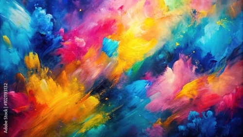 Vibrant Abstract Painting with Texturized Bold Strokes in Blues, Pinks, and Yellows