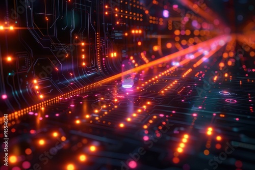 Vibrant abstract technology background with glowing circuits and patterns