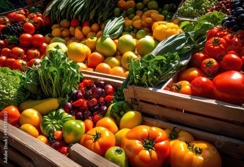 vibrant assortment fresh organic fruits vegetables displaying colorful array bounty nutrient rich produce, healthy, nutrition, variety, garden, seasonal, ripe