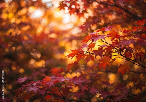Vibrant Autumn Maple Leaves in Golden Sunlight.