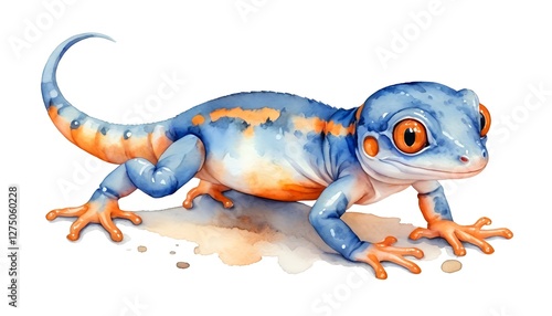 Vibrant Blue and Orange Gecko Watercolor Painting