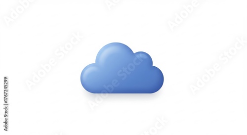Vibrant blue cloud icon with gentle volumetric light casts a subtle shadow on a clean white background a modern digital element. AI Generated