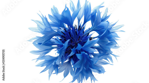 Vibrant blue cornflower blooming on transparent background