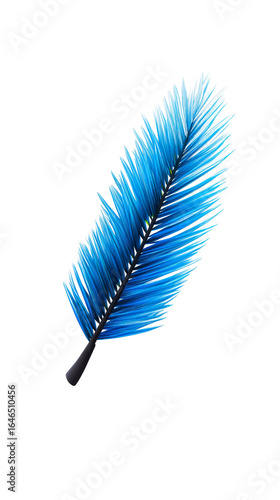 Vibrant Blue Tropical Palm Frond Isolated on White Background, cut out transparent