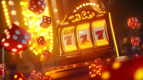 Vibrant Casino Slot Machine with Flashing Lights and Dice