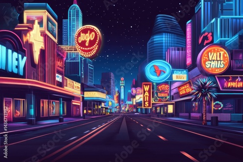 Vibrant city nightlife under starry sky with neon signs and bustling streets during late evening hours