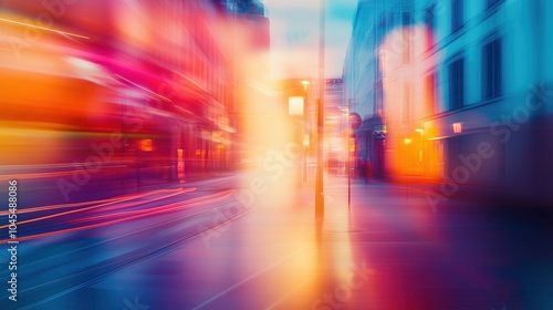 Vibrant city street lights with motion blur in an abstract night cityscape. High-speed photography capturing blurred colorful lights and volumetric lighting on the streets of New York, Paris, and Lond