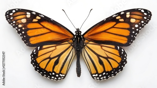 Vibrant Close-Up of an Elegant Monarch Butterfly with Intricate Patterns and Graceful Wings on White Background