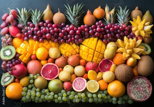 Vibrant Collection of Fresh Fruits Including Tropical Varieties, Citrus and Exotic Flavors Perfect for Healthy Living and Culinary Inspiration